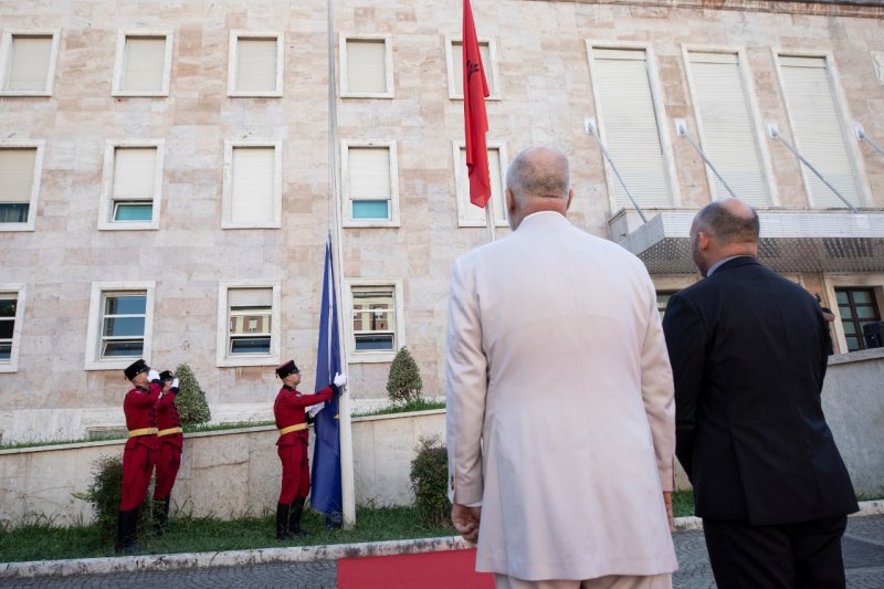 EU Flag Raised in Front of PM's Office in Albanian Capital